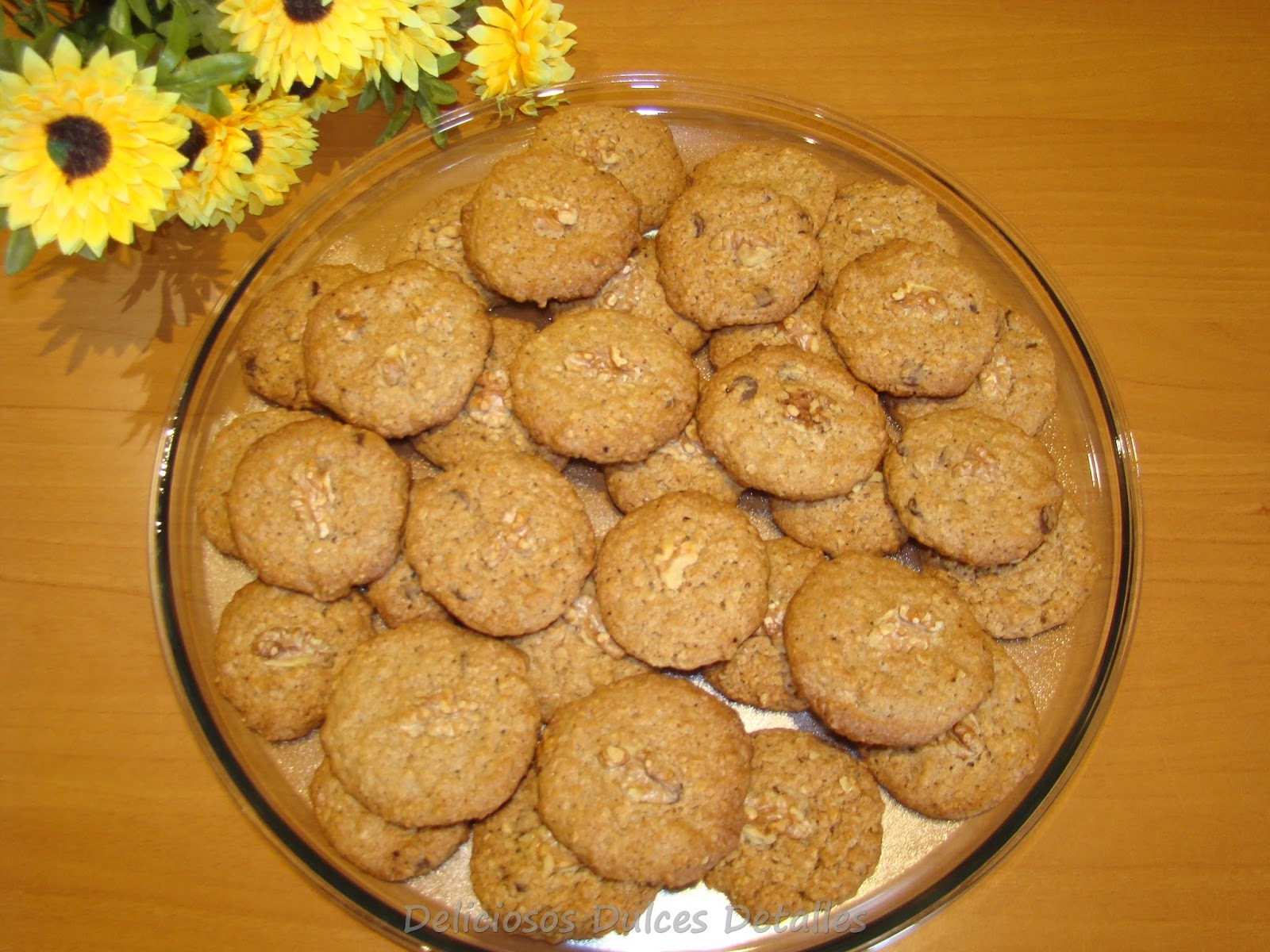Galletas de harina integral,avena,pepitas de chocolate y nueces.