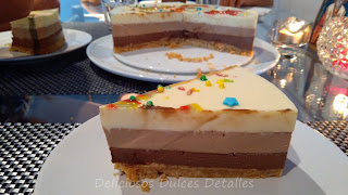 | Tarta de queso,con chocolate blanco y caramelo.Una delicia. |