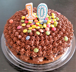 | Tarta de chocolate,almendra y lacasitos.¡Apta para celiacos! |