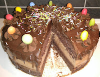 | Tarta de chocolate,almendra y lacasitos.¡Apta para celiacos! |